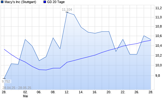 Mit dem Anstieg auf 10,59 EUR hat die Macy's-Aktie am 27.05.2025 die 20-Tage-Linie nach oben gekreuzt.