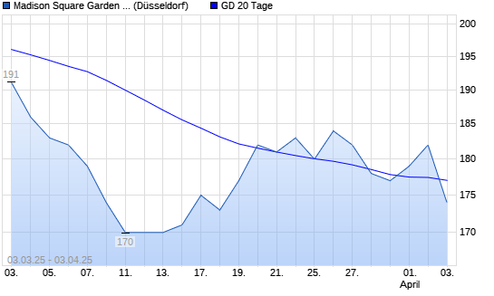 Mit dem Anstieg auf 182,00 EUR hat die Madison Square Garden Sports A-Aktie am 02.04.2025 die 20-Tage-Linie nach oben gekreuzt.