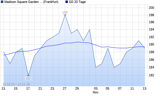 Mit dem Anstieg auf 191,00 EUR hat die Madison Square Garden Sports A-Aktie am 12.11.2025 die 20-Tage-Linie nach oben gekreuzt.