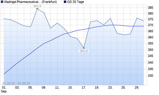 Mit dem Anstieg auf 376,10 EUR hat die Madrigal Pharmaceuticals-Aktie am 29.09.2025 die 20-Tage-Linie nach oben gekreuzt.