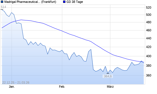 Mit dem Rücksetzer auf 384,90 EUR hat die Madrigal Pharmaceuticals-Aktie am 20.03.2026 die 38-Tage-Linie nach unten gekreuzt.