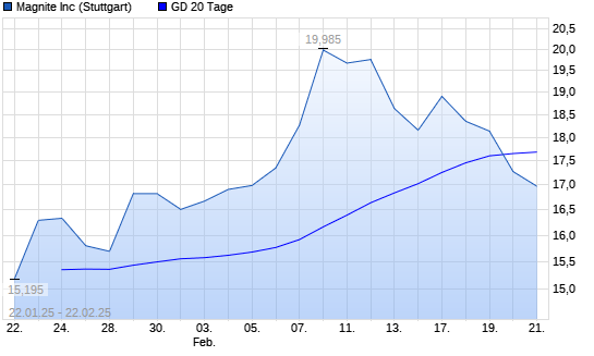 Mit dem Rücksetzer auf 17,15 EUR hat die Magnite (ex Rubicon Project)-Aktie am 21.02.2025 die 20-Tage-Linie nach unten gekreuzt.