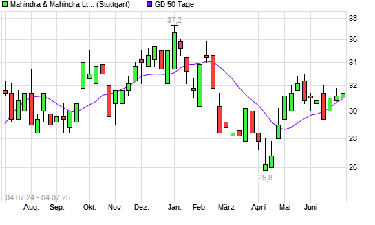 Mit dem Rücksetzer auf 30,80 EUR hat die Mahindra & Mahindra GDR-Aktie am 03.07.2025 die 50-Tage-Linie nach unten gekreuzt.