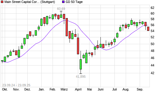 Mit dem Rücksetzer auf 55,25 EUR hat die Main Street Capital Corporation Common Stock-Aktie am 22.09.2025 die 50-Tage-Linie nach unten gekreuzt.