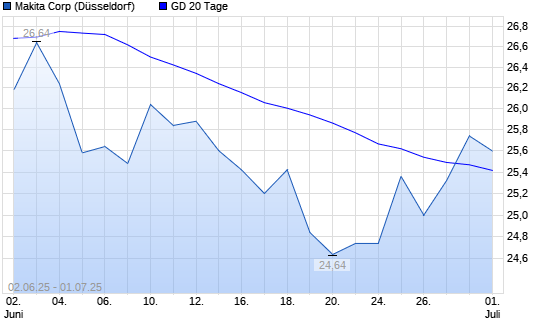 Mit dem Anstieg auf 26,00 EUR hat die Makita Corp-Aktie am 30.06.2025 die 20-Tage-Linie nach oben gekreuzt.