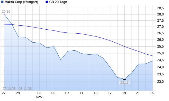 Mit dem Anstieg auf 25,20 EUR hat die Makita Corp-Aktie am 24.11.2025 die 20-Tage-Linie nach oben gekreuzt.