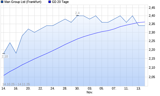 Mit dem Rücksetzer auf 2,34 EUR hat die Man Group-Aktie am 13.11.2025 die 20-Tage-Linie nach unten gekreuzt.