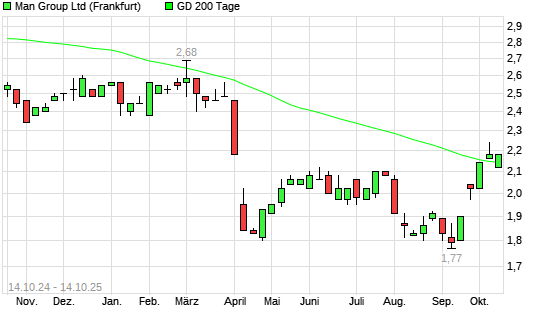 Mit dem Rücksetzer auf 2,12 EUR hat die Man Group-Aktie am 13.10.2025 die 200-Tage-Linie nach unten gekreuzt.