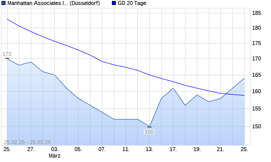 Mit dem Anstieg auf 163,00 EUR hat die Manhattan Associates-Aktie am 24.03.2025 die 20-Tage-Linie nach oben gekreuzt.