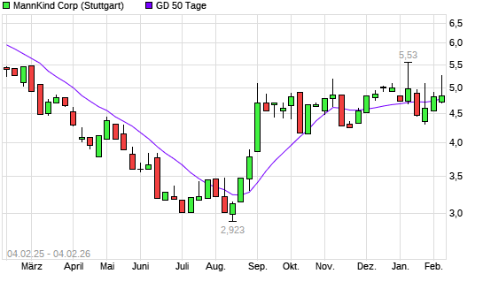 Mit dem Anstieg auf 5,03 EUR hat die MannKind-Aktie am 03.02.2026 die 50-Tage-Linie nach oben gekreuzt.