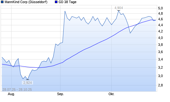 Mit dem Rücksetzer auf 4,55 EUR hat die MannKind-Aktie am 27.10.2025 die 38-Tage-Linie nach unten gekreuzt.