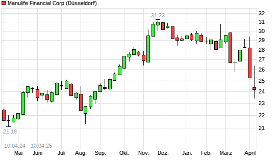 Mit dem Rücksetzer auf 23,91 EUR hat die Manulife Financial-Aktie (ISIN CA56501R1064) am 09.04.2025 ein neues 6-Monats-Tief erreicht und damit den Kurs vom 07.04.2025 eingestellt.