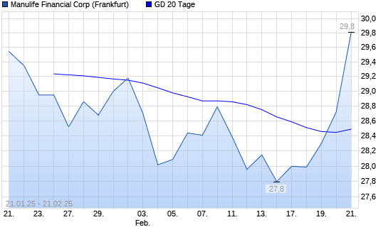 Mit dem Anstieg auf 28,72 EUR hat die Manulife Financial-Aktie am 20.02.2025 die 20-Tage-Linie nach oben gekreuzt.
