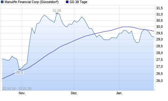 Mit dem Anstieg auf 29,54 EUR hat die Manulife Financial-Aktie am 21.01.2025 die 38-Tage-Linie nach oben gekreuzt.