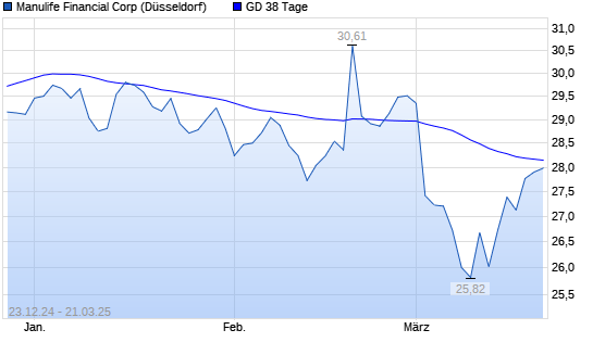 Mit dem Anstieg auf 28,16 EUR hat die Manulife Financial-Aktie am 20.03.2025 die 38-Tage-Linie nach oben gekreuzt.