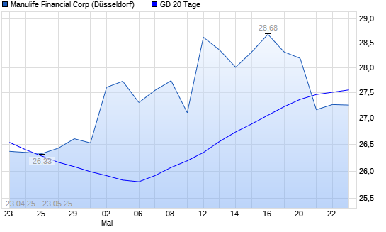 Mit dem Rücksetzer auf 27,17 EUR hat die Manulife Financial-Aktie am 22.05.2025 die 20-Tage-Linie nach unten gekreuzt.