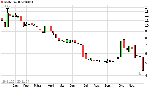 Mit dem Rücksetzer auf 4,55 EUR hat die Manz-Aktie (ISIN DE000A0JQ5U3) am 28.11.2024 ein neues All-Time-Low erreicht und damit den Kurs vom 27.11.2024 eingestellt.