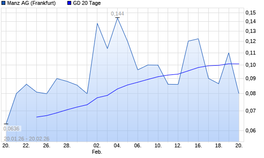 Mit dem Anstieg auf 0,11 EUR hat die Manz-Aktie am 19.02.2026 die 20-Tage-Linie nach oben gekreuzt.