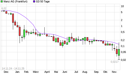 Mit dem Anstieg auf 0,15 EUR hat die Manz-Aktie am 13.11.2025 die 50-Tage-Linie nach oben gekreuzt.