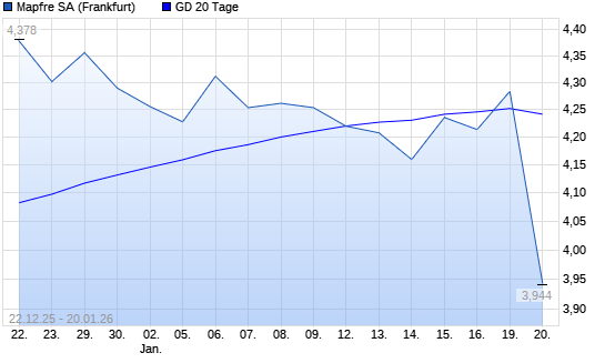 Mit dem Anstieg auf 4,28 EUR hat die Mapfre-Aktie am 19.01.2026 die 20-Tage-Linie nach oben gekreuzt.