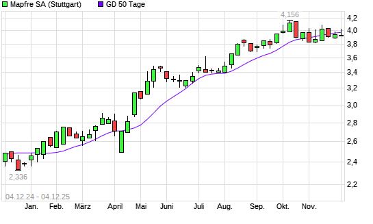 Mit dem Anstieg auf 4,04 EUR hat die Mapfre-Aktie am 03.12.2025 die 50-Tage-Linie nach oben gekreuzt.