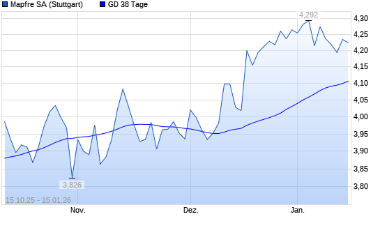 Mit dem Rücksetzer auf 4,16 EUR hat die Mapfre-Aktie am 14.01.2026 die 38-Tage-Linie nach unten gekreuzt.