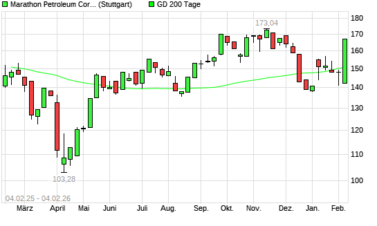 Mit dem Anstieg auf 157,36 EUR hat die Marathon Petroleum-Aktie am 03.02.2026 die 200-Tage-Linie nach oben gekreuzt.