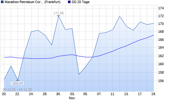Mit dem Rücksetzer auf 167,52 EUR hat die Marathon Petroleum-Aktie am 18.11.2025 die 20-Tage-Linie nach unten gekreuzt.
