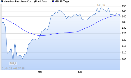 Mit dem Rücksetzer auf 141,06 EUR hat die Marathon Petroleum-Aktie am 30.06.2025 die 38-Tage-Linie nach unten gekreuzt.