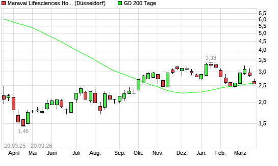 Mit dem Rücksetzer auf 2,56 EUR hat die Maravai LifeSciences Holdings-Aktie am 19.03.2026 die 200-Tage-Linie nach unten gekreuzt.