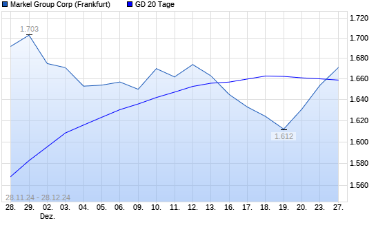 Mit dem Anstieg auf 1.672,00 EUR hat die Markel-Aktie am 27.12.2024 die 20-Tage-Linie nach oben gekreuzt.