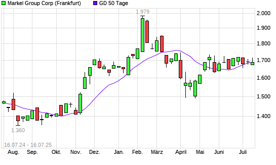 Mit dem Anstieg auf 1.711,00 EUR hat die Markel-Aktie am 15.07.2025 die 50-Tage-Linie nach oben gekreuzt.