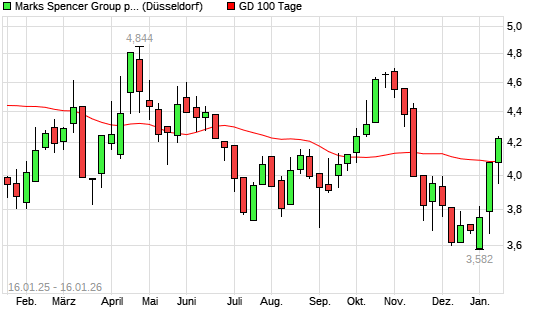 Mit dem Anstieg auf 4,12 EUR hat die Marks Spencer Group-Aktie am 15.01.2026 die 100-Tage-Linie nach oben gekreuzt.