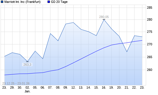 Mit dem Anstieg auf 273,50 EUR hat die Marriott International-Aktie am 22.01.2026 die 20-Tage-Linie nach oben gekreuzt.