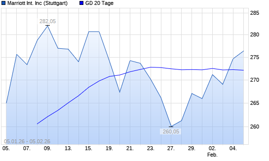 Mit dem Anstieg auf 274,75 EUR hat die Marriott International-Aktie am 04.02.2026 die 20-Tage-Linie nach oben gekreuzt.