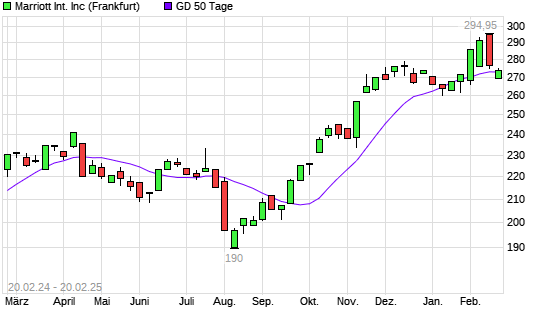 Mit dem Anstieg auf 275,25 EUR hat die Marriott International-Aktie am 19.02.2025 die 50-Tage-Linie nach oben gekreuzt.