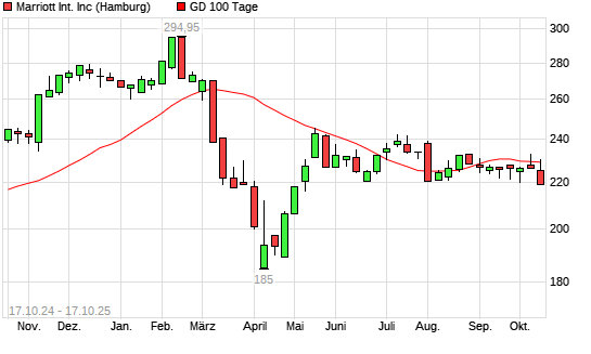 Mit dem Rücksetzer auf 227,70 EUR hat die Marriott International-Aktie am 16.10.2025 die 100-Tage-Linie nach unten gekreuzt.