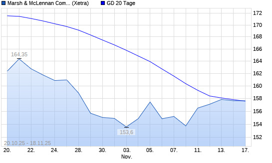 Mit dem Rücksetzer auf 155,95 EUR hat die Marsh & McLennan Companies-Aktie am 17.11.2025 die 20-Tage-Linie nach unten gekreuzt.