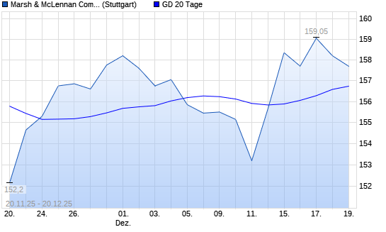 Mit dem Rücksetzer auf 156,85 EUR hat die Marsh & McLennan Companies-Aktie am 19.12.2025 die 20-Tage-Linie nach unten gekreuzt.