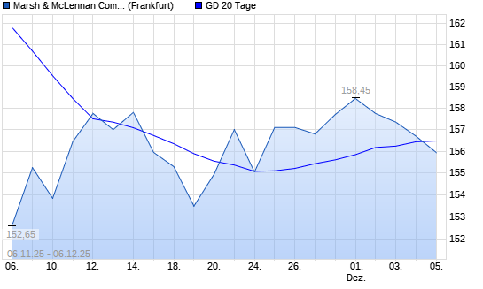Mit dem Rücksetzer auf 155,95 EUR hat die Marsh & McLennan Companies-Aktie am 05.12.2025 die 20-Tage-Linie nach unten gekreuzt.Die Marsh & McLennan Companies-Aktie befindet ...weiterlesen