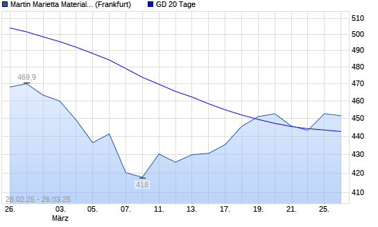 Mit dem Anstieg auf 452,60 EUR hat die Martin Marietta Materials-Aktie am 25.03.2025 die 20-Tage-Linie nach oben gekreuzt.