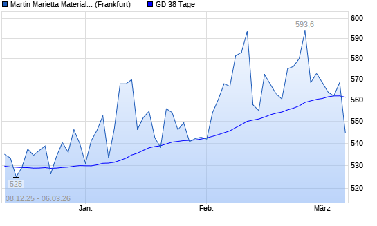 Mit dem Anstieg auf 568,40 EUR hat die Martin Marietta Materials-Aktie am 05.03.2026 die 38-Tage-Linie nach oben gekreuzt.