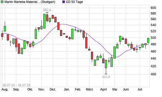 Mit dem Anstieg auf 494,00 EUR hat die Martin Marietta Materials-Aktie am 25.07.2025 die 50-Tage-Linie nach oben gekreuzt.
