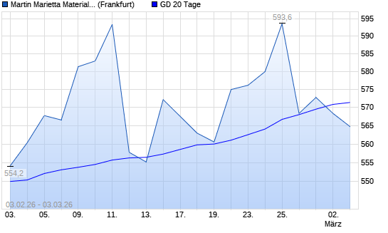 Mit dem Rücksetzer auf 568,40 EUR hat die Martin Marietta Materials-Aktie am 02.03.2026 die 20-Tage-Linie nach unten gekreuzt.