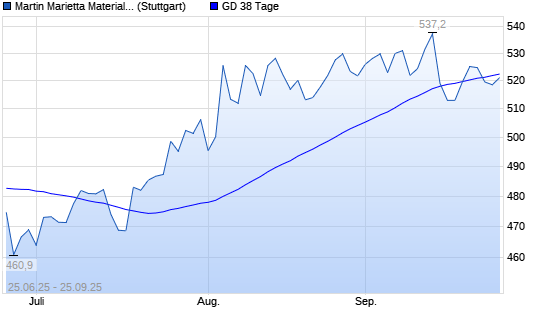 Mit dem Rücksetzer auf 520,40 EUR hat die Martin Marietta Materials-Aktie am 24.09.2025 die 38-Tage-Linie nach unten gekreuzt.