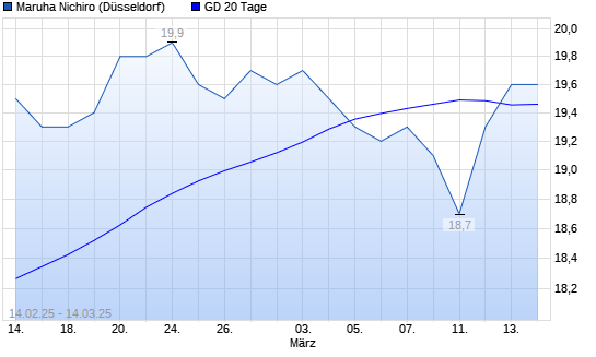 Mit dem Anstieg auf 19,70 EUR hat die Maruha Nichiro-Aktie am 13.03.2025 die 20-Tage-Linie nach oben gekreuzt.