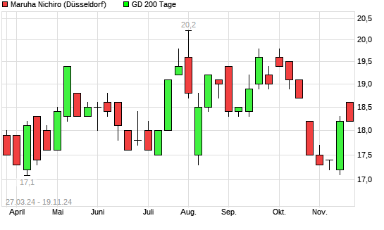 Mit dem Anstieg auf 18,50 EUR hat die Maruha Nichiro-Aktie am 18.11.2024 die 200-Tage-Linie nach oben gekreuzt.