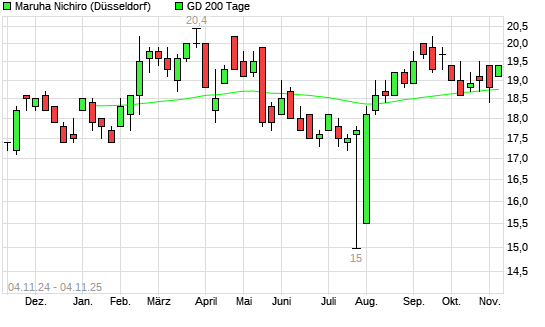 Mit dem Anstieg auf 19,20 EUR hat die Maruha Nichiro-Aktie am 03.11.2025 die 200-Tage-Linie nach oben gekreuzt.