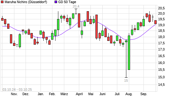 Mit dem Anstieg auf 19,50 EUR hat die Maruha Nichiro-Aktie am 02.10.2025 die 50-Tage-Linie nach oben gekreuzt.