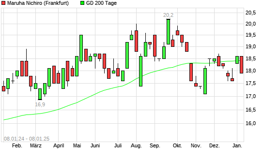 Mit dem Rücksetzer auf 18,10 EUR hat die Maruha Nichiro-Aktie am 07.01.2025 die 200-Tage-Linie nach unten gekreuzt.